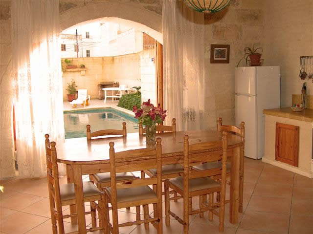 Ta’ Karmnu ist ein Farmhouse für bis zu 8 Personen und liegt in Xaghra, ca. 10 Fahrminuten von Marsalforn entfernt. Dieses Haus hat eine geräumige Küche, Ess- und Wohnbereich, einen grossen Pool und Platz zum Sonnenbaden und Grillen. In den oberen Etagen befinden sich vier Schlafzimmer, eins davon mit eigenem Badezimmer. Leihwagen benötigt!